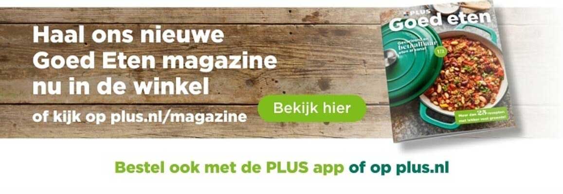 Bekijk de Haal Ons Nieuwe Goed Eten Magazine Nu In De Winkel aanbieding bij PLUS! Deze fantastische aanbieding is nu beschikbaar in de nieuwste PLUS folder. Profiteer van deze kans en bespaar flink op je aankoop.