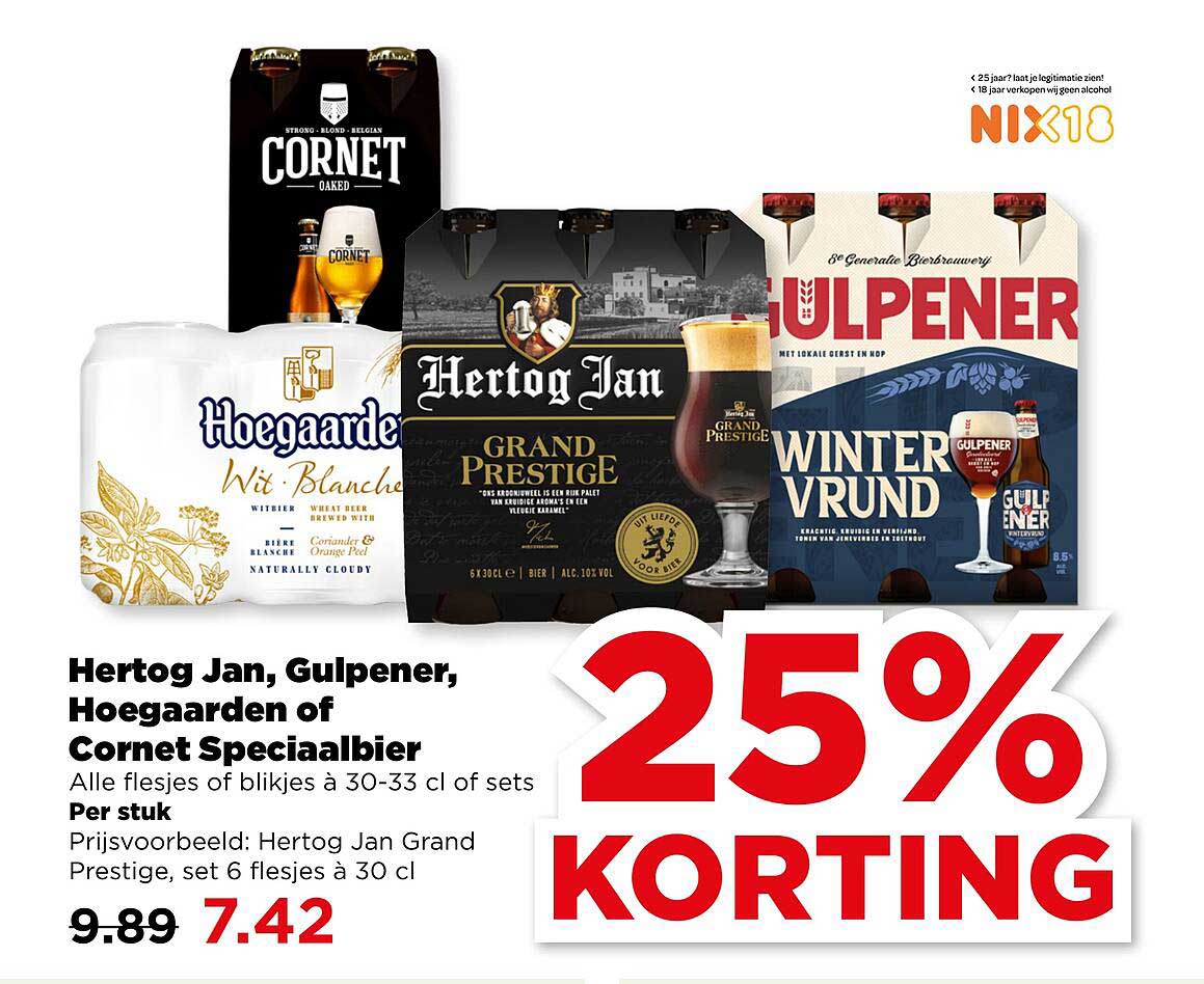 Bekijk nu de Hertog Jan, Gulpener, Hoegaarden of Cornet Speciaalbier aanbieding in de PLUS folder. Deze aanbieding is geldig van 17-11-2024 tot en met 23-11-2024.