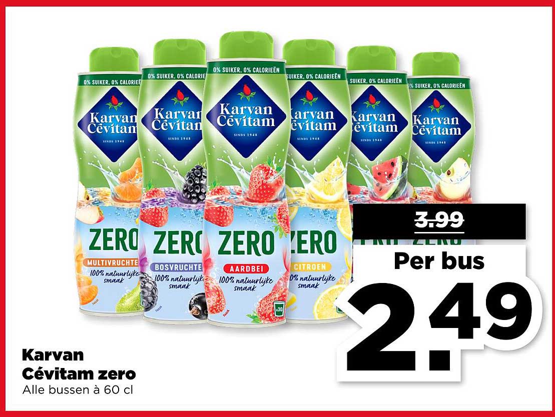 Ontdek de geweldige Karvan Cévitam Zero aanbieding in de nieuwste PLUS folder. Naast deze aanbieding vind je nog veel meer aantrekkelijke kortingen. Je kunt de Karvan Cévitam Zero eenvoudig online bestellen via de PLUS website of kopen in een winkel bij jou in de buurt.