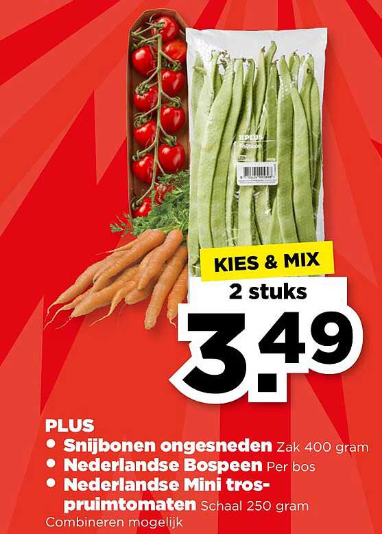 Bekijk de Kies & Mix 2 Stuks aanbieding bij PLUS! Deze fantastische aanbieding is nu beschikbaar in de nieuwste PLUS folder. Profiteer van deze kans en bespaar flink op je aankoop.
