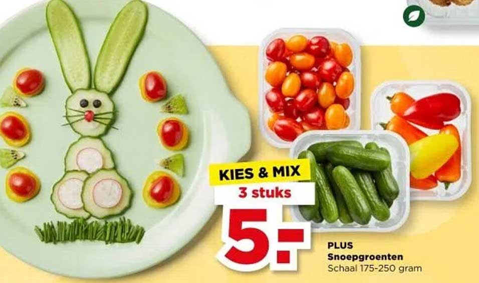 Deze aanbieding is perfect voor iedereen die houdt van gezonde snacks en creatief koken! Met de PLUS snoepgroenten kun je op een leuke en gezonde manier genieten van groenten. Van snackkomkommers tot zoete cherrytomaatjes, deze mix biedt een scala aan smaken en texturen, ideaal voor zowel kinderen als volwassenen.