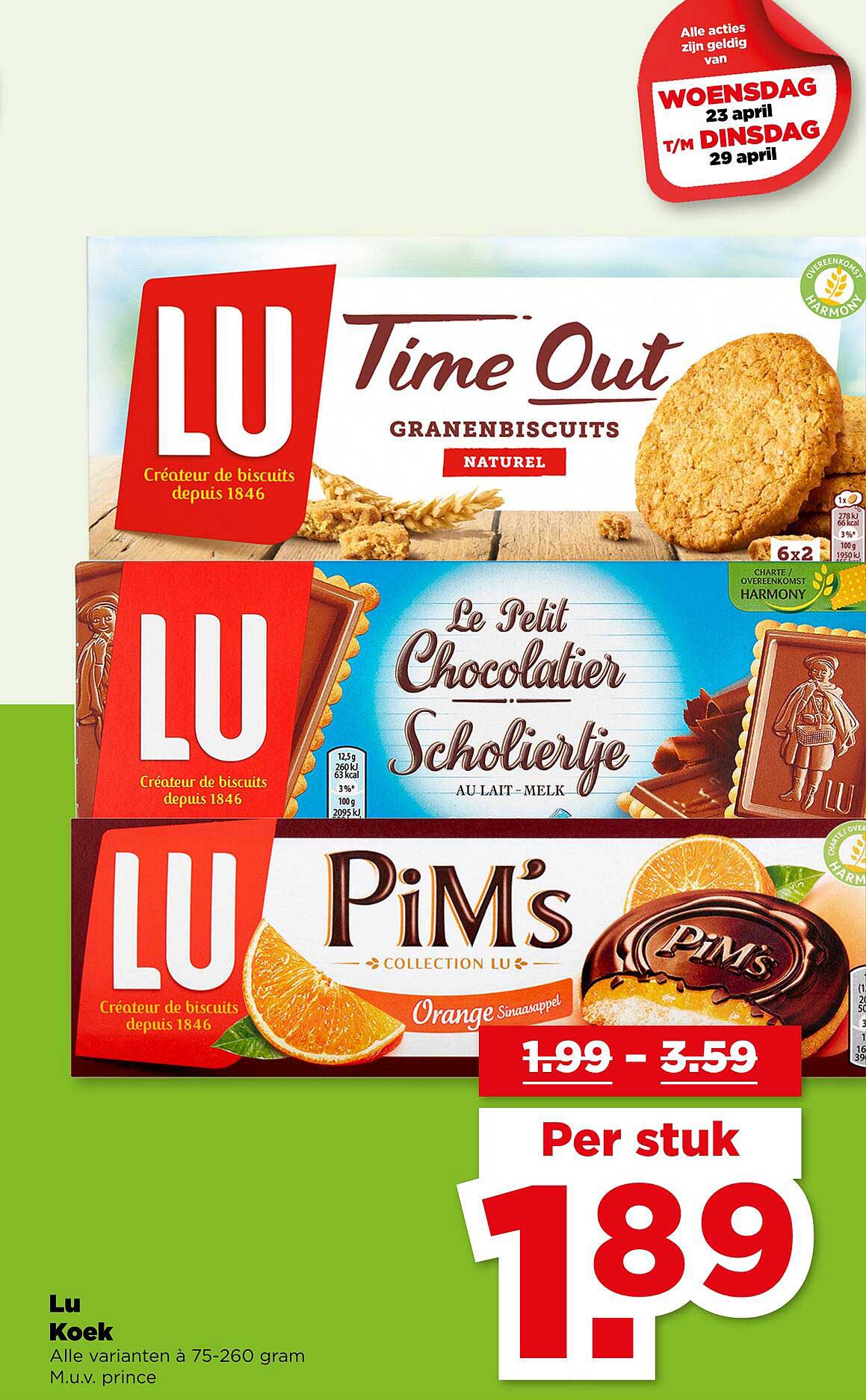 Bekijk nu de Lu Koek aanbieding in de PLUS folder. Deze aanbieding is geldig van 23-04-2025 tot en met 29-04-2025.