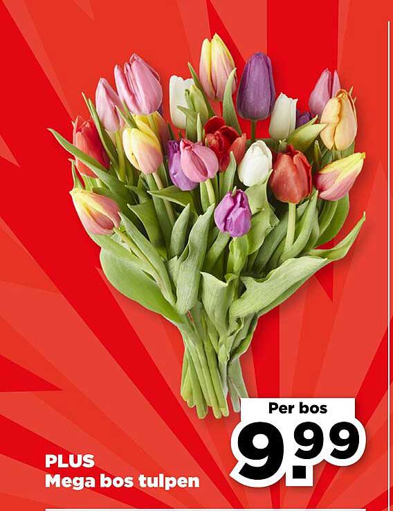 Bekijk nu de Mega bos tulpen aanbieding in de PLUS folder. Deze aanbieding is geldig van 26-03-2025 tot en met 01-04-2025.