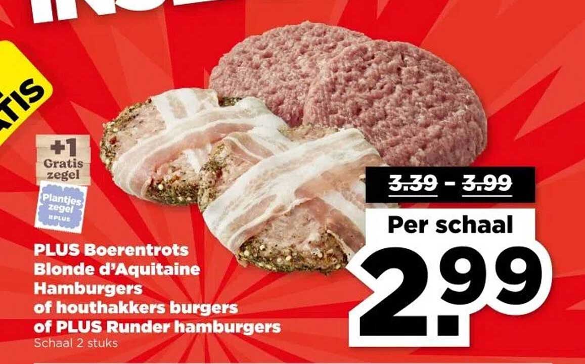 Heb je zin in een heerlijke burgeravond? Dan is deze aanbieding echt iets voor jou! De PLUS Boerenrots hamburgers zijn niet alleen ontzettend smakelijk, maar ook voordelig geprijsd. Met een aantrekkelijke korting per schaal, moet je deze kans absoluut grijpen. Voor een prijs van slechts €2,99 per schaal geniet je van twee stuks volwaardige burgers. Perfect voor op de grill of in de pan!