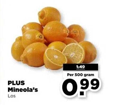 De reguliere prijs van de Mineola’s is €1,49 per 500 gram, maar deze week profiteer je van een aantrekkelijke aanbiedingprijs van slechts €0,99! Dit is een kortingspercentage van meer dan 33%, wat het een uitstekende tijd maakt om deze vruchten in te slaan. Waarom zou je meer betalen als je ze nu voor minder kunt krijgen?