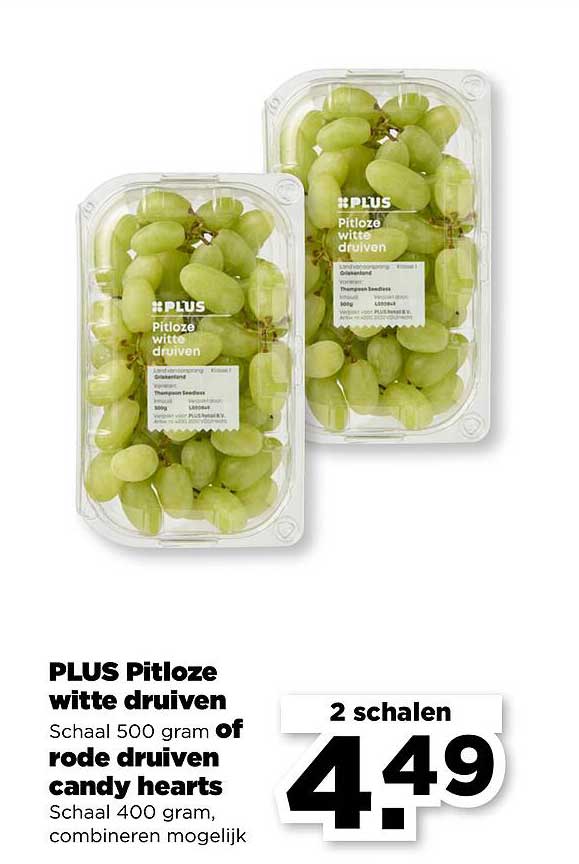 Bekijk de Plus Pitloze Witte Druiven aanbieding bij PLUS! Deze fantastische aanbieding is nu beschikbaar in de nieuwste PLUS folder. Profiteer van deze kans en bespaar flink op je aankoop.