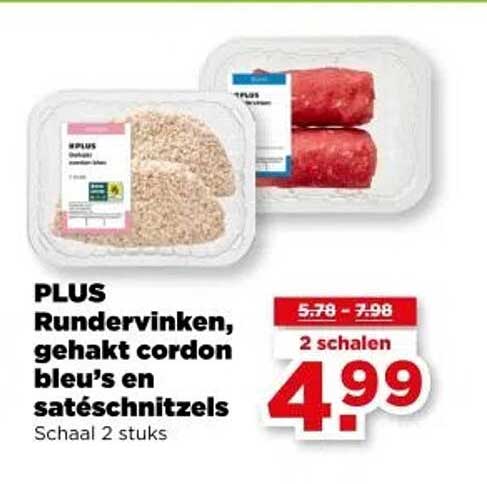 Ben je op zoek naar een smakelijke en praktische maaltijdoptie voor een scherpe prijs? Dan is de aanbieding op deze pagina perfect voor jou! Deze combinatie van PLUS Rundervinken, gehakt cordon bleu’s en satéschnitzels biedt een veelzijdigheid aan mogelijkheden in de keuken. Met deze producten maak je eenvoudig een heerlijke maaltijd voor jezelf, je gezin of gasten.