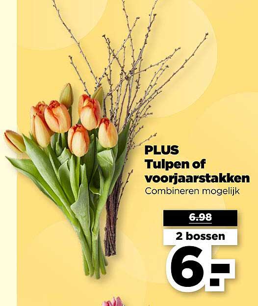 Bekijk nu de PLUS Tulpen of voorjaarstakken aanbieding in de PLUS folder. Deze aanbieding is geldig van 16-04-2025 tot en met 22-04-2025.