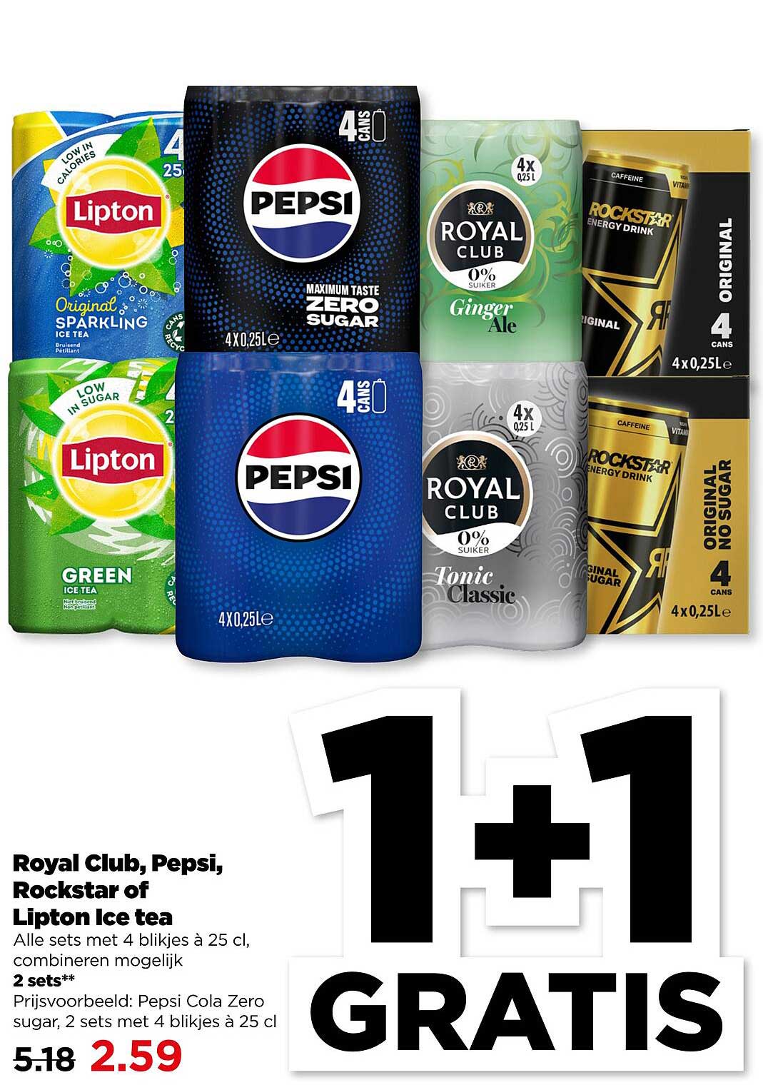 Royal Club, Pepsi, Rockstar Of Lipton Ice Tea aanbieding bij PLUS
