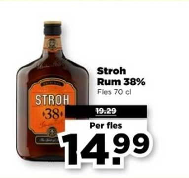 Bekijk de Stroh Rum 38% aanbieding bij PLUS! Deze fantastische aanbieding is nu beschikbaar in de nieuwste PLUS folder. Profiteer van deze kans en bespaar flink op je aankoop.