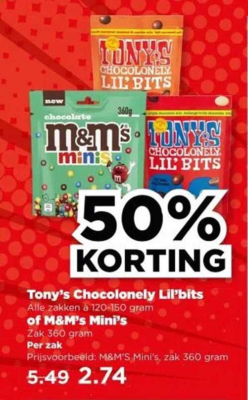 Ontdek de geweldige Tony's Chocolonely Lil'bits Of M&M's Mini's aanbieding in de nieuwste PLUS folder. Naast deze aanbieding vind je nog veel meer aantrekkelijke kortingen. Je kunt de Tony's Chocolonely Lil'bits Of M&M's Mini's eenvoudig online bestellen via de PLUS website of kopen in een winkel bij jou in de buurt.