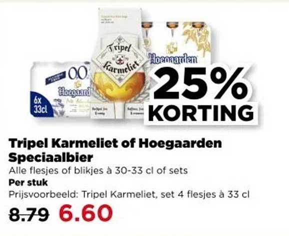 Bekijk nu de Tripel Karmeliet of Hoegaarden Speciaalbier aanbieding in de PLUS folder. Deze aanbieding is geldig van 05-03-2025 tot en met 11-03-2025.