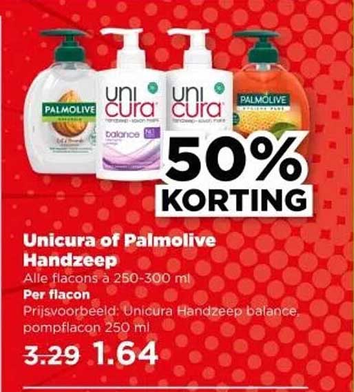 Bekijk nu de Unicura of Palmolive Handzeep aanbieding in de PLUS folder. Deze aanbieding is geldig van 09-02-2025 tot en met 11-02-2025.