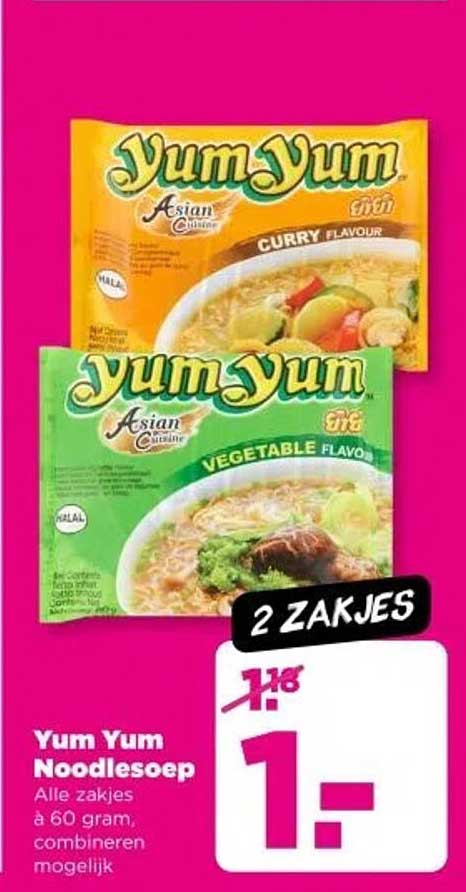 Bekijk de Yum Yum Noodlesoep aanbieding bij PLUS! Deze fantastische aanbieding is nu beschikbaar in de nieuwste PLUS folder. Profiteer van deze kans en bespaar flink op je aankoop.