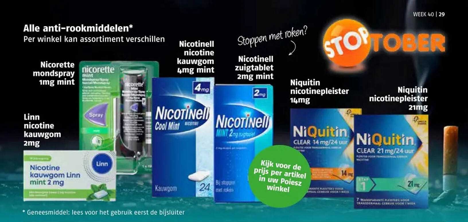 Voor meer informatie en andere aantrekkelijke aanbiedingen, verwijs ik je graag naar de folder van Poiesz. Hier vind je alles wat je nodig hebt om succesvol te stoppen met roken en meer details over de producten die in deze aanbieding zijn opgenomen.