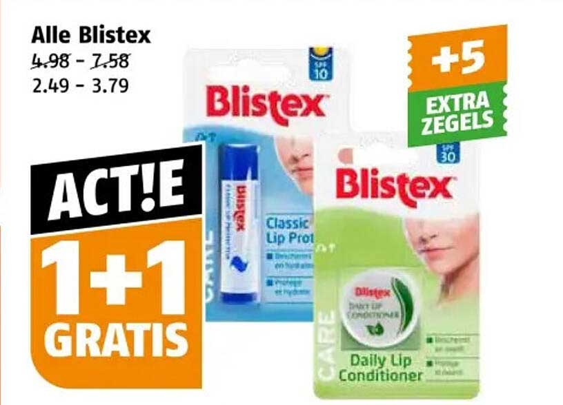 Normaal gesproken kosten de Blistex producten tussen de €2,49 en €3,79 per stuk, maar nu krijg je de tweede gratis bij aankoop van één. Dit betekent dat je voor de prijs van één product twee kunt meenemen. Een fantastische kans om te besparen op de aankoop van hoogwaardige lipverzorging.