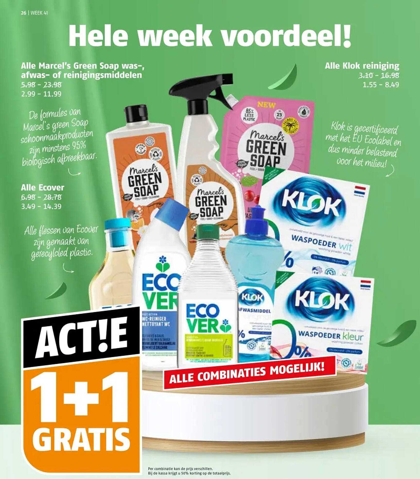 Voor deze week kun je profiteren van de aanbieding van 1+1 gratis. Dit betekent dat je niet alleen kunt besparen op je aankopen, maar ook de kans krijgt om verschillende producten uit te proberen. Normaal variëren de prijzen van de Marcel's Green Soap-producten van 5,98 tot 23,98 euro, maar met deze actie krijg je een verbluffende korting. Dit zorgt voor een significante besparing op je schoonmaakbudget!