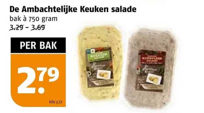 Met de huidige prijs van €2,79 maak je echt een goede deal. Je bespaart tot wel €0,90 per bak als je vergelijkt met de normale prijs! Dit maakt de Ambachtelijke Keuken salade niet alleen lekker, maar ook financieel aantrekkelijk. Zo kun je meer genieten zonder je zorgen te maken over de kosten.