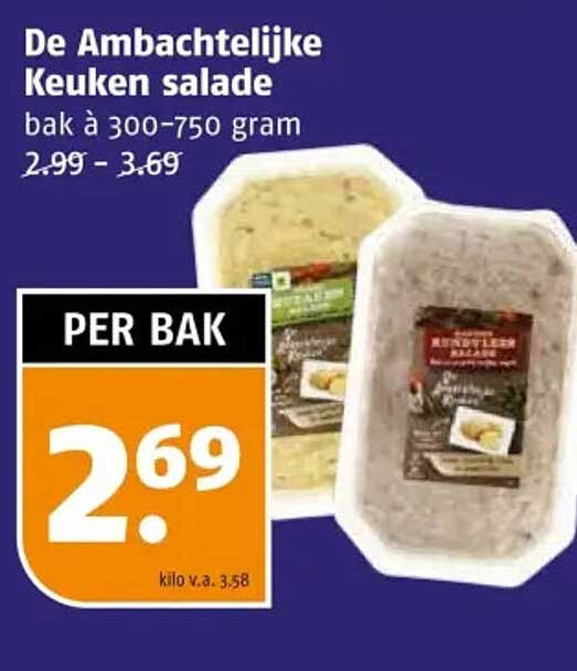 Wat een geweldige kans om te genieten van de Ambachtelijke Keuken salade, nu verkrijgbaar voor slechts €2,69 per bak! Deze salade, die met zorg is bereid, is perfect voor bij de maaltijd of als verfrissende snack.