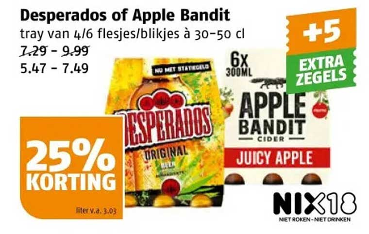 Bekijk nu de Desperados of Apple Bandit aanbieding in de Poiesz folder. Deze aanbieding is geldig van 19-10-2025 tot en met 25-10-2025.