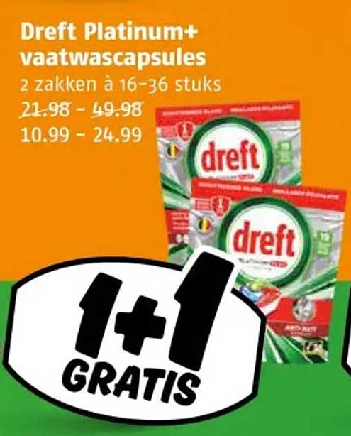 Bekijk nu de Dreft Platinum+ vaatwascapsules aanbieding in de Poiesz folder. Deze aanbieding is geldig van 23-11-2025 tot en met 29-11-2025.