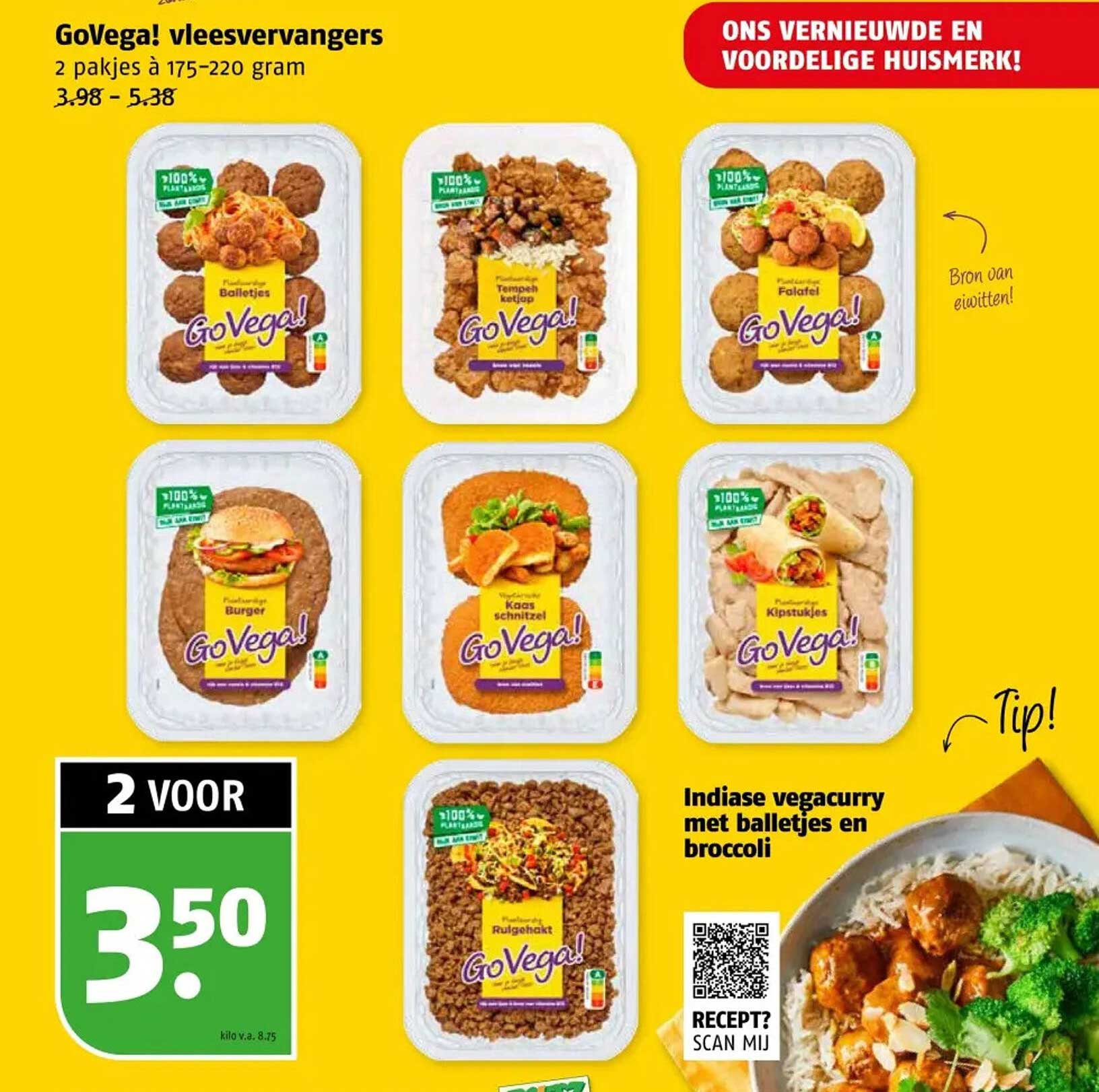 Bekijk nu de GoVega! vleesvervangers 2 voor 3,50 aanbieding in de Poiesz folder. Deze aanbieding is geldig van 12-10-2025 tot en met 18-10-2025.