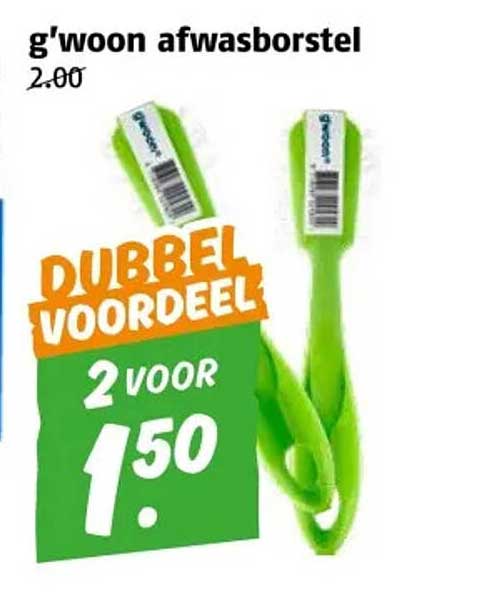 Normaal gesproken kost één g'woon afwasborstel 2,00 euro. Nu krijg je de kans om twee borstels te kopen voor slechts 1,50 euro. Dit is een aantrekkelijk voordeel dat je niet wilt missen! Door in te kopen tijdens deze actie, bespaar je niet alleen geld, maar zorg je ook voor extra voorraad in je huis. Het perfecte moment om je keukenuitrusting bij te werken!