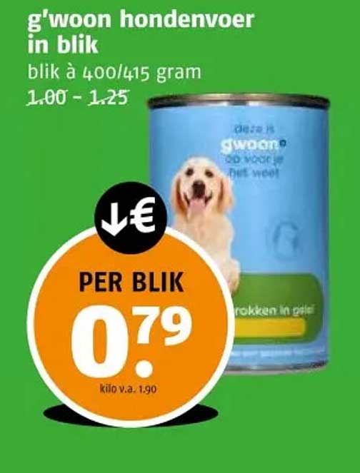 Normaal gesproken kost dit hondenvoer tussen de €1,00 en €1,25 per blik. Met de huidige aanbieding van €0,79 per blik, bespaar je direct en profiteer je van een flinke korting. Dit is een ideale gelegenheid om je voorraad aan te vullen en je huisdier te verwennen zonder verdere kosten.