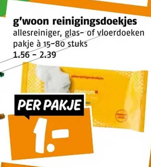 Bekijk nu de g'woon reinigingsdoekjes aanbieding in de Poiesz folder. Deze aanbieding is geldig van 21-09-2025 tot en met 27-09-2025.