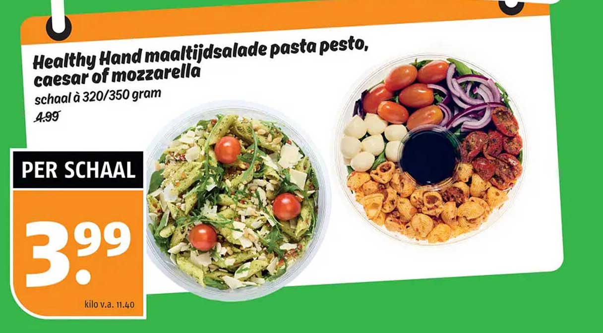 Bekijk nu de Healthy Hand maaltijdsalade pasta pesto, caesar of mozzarella aanbieding in de Poiesz folder. Deze aanbieding is geldig van 03-07-2025 tot en met 06-07-2025.