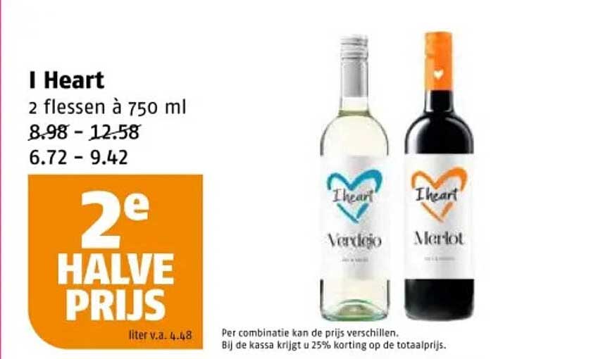 Bekijk nu de I Heart 2 flessen à 750 ml aanbieding in de Poiesz folder. Deze aanbieding is geldig van 06-07-2025 tot en met 12-07-2025.