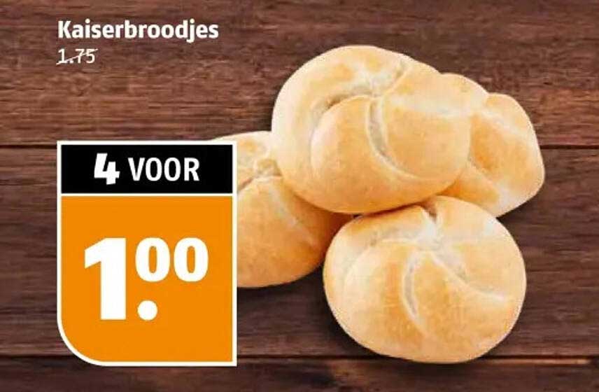 Heerlijk versgebakken kaiserbroodjes, nu tijdelijk in de aanbieding! Deze luchtige broodjes zijn perfect voor bij het ontbijt, de brunch of als tussendoortje. Met deze aanbieding haal je 4 kaiserbroodjes in huis voor slechts €1,00. Een smakelijke deal die je niet wilt missen!