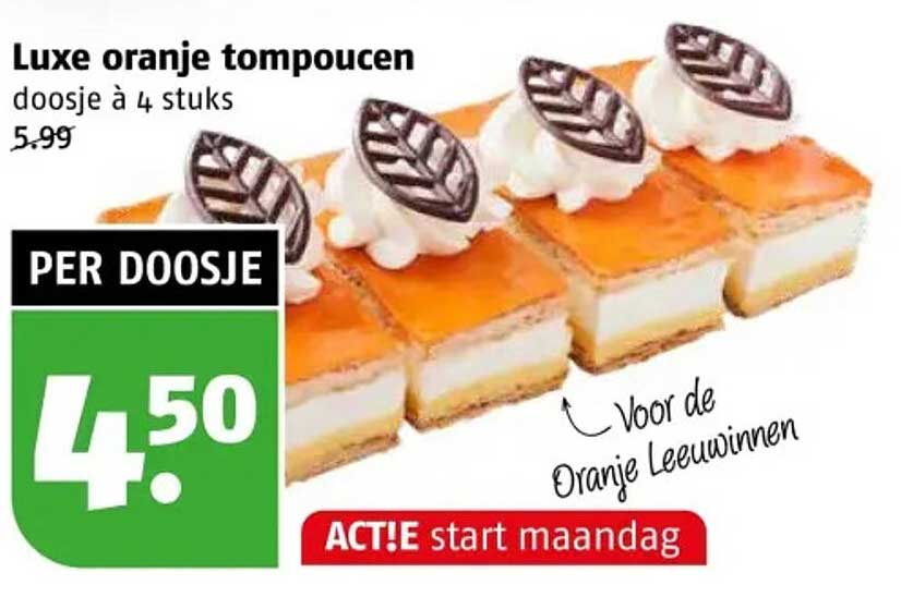 Bekijk nu de Luxe oranje tompoucen aanbieding in de Poiesz folder. Deze aanbieding is geldig van 06-07-2025 tot en met 12-07-2025.