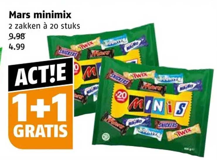 Bekijk nu de Mars minimix 2 zakken à 20 stuks aanbieding in de Poiesz folder. Deze aanbieding is geldig van 02-11-2025 tot en met 08-11-2025.