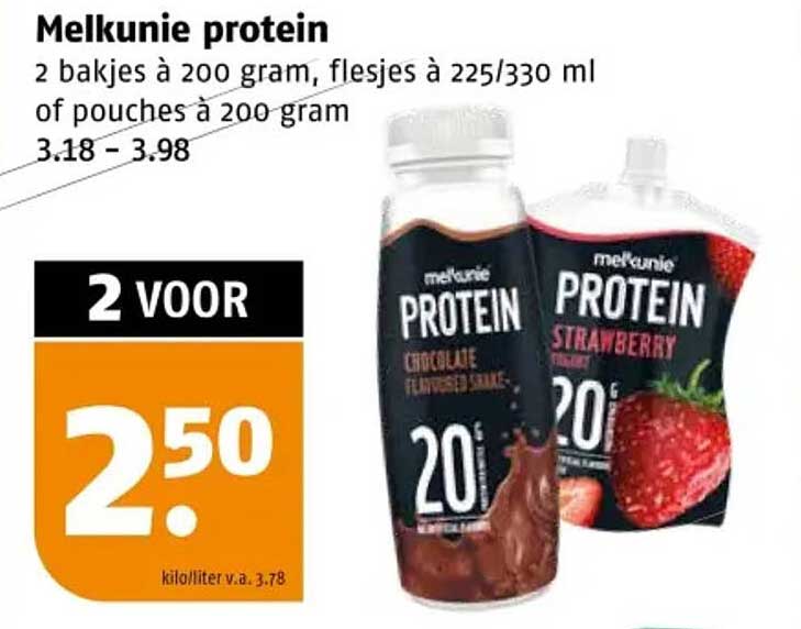 Bekijk nu de Melkunie protein 2 voor 2.50 aanbieding in de Poiesz folder. Deze aanbieding is geldig van 21-09-2025 tot en met 27-09-2025.
