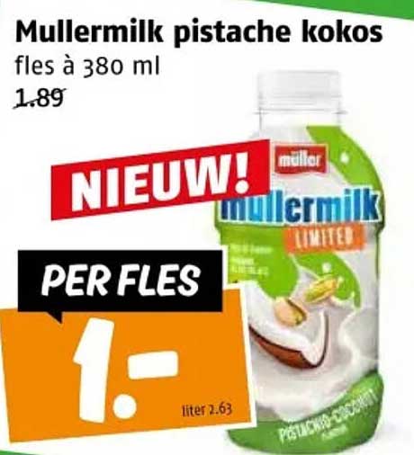Bekijk nu de Mullermilk pistache kokos fles à 380 ml aanbieding in de Poiesz folder. Deze aanbieding is geldig van 12-10-2025 tot en met 18-10-2025.