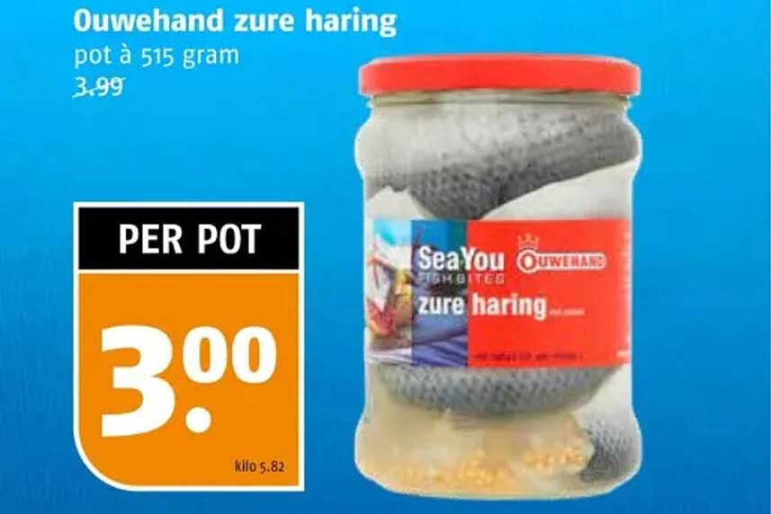 Wat deze aanbieding nog extra aantrekkelijk maakt, is de prijs. Normaal kost een pot Ouwehand zure haring €3,99, maar nu kun je deze bijzondere haring kopen voor slechts €3,00 per pot! Dit betekent dat je niet alleen een kwaliteitsproduct koopt, maar ook flink bespaart. Het is een uitgelezen kans om je voorraad aan te vullen.
