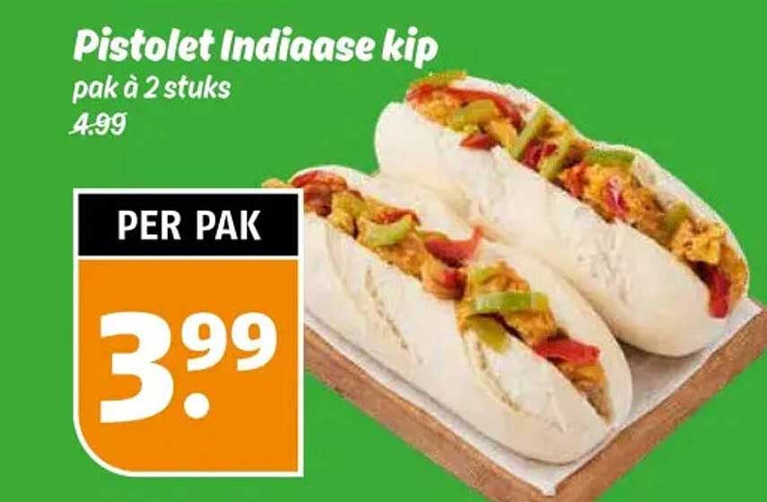 De originele prijs van de Pistolet Indiaase kip is €4,99, maar tijdens deze aanbieding kun je het verkrijgen voor slechts €3,99 per pak. Dit betekent dat je niet alleen geld bespaart, maar ook een heerlijk product in huis haalt dat je eenvoudig kunt bereiden.