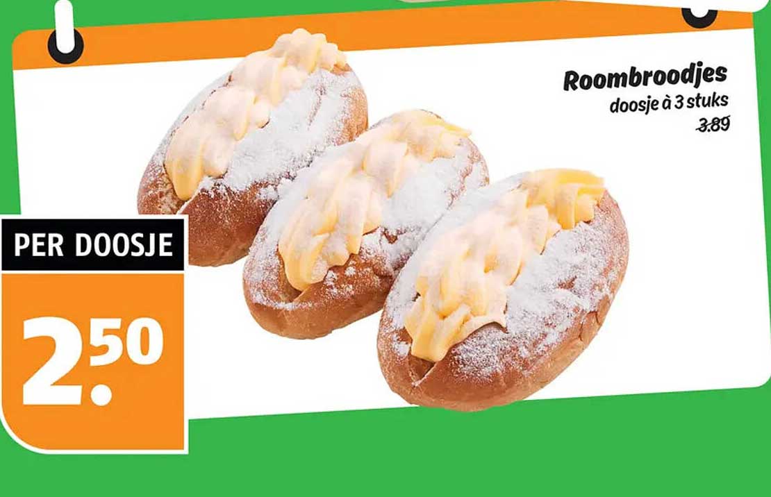De normale prijs van deze roombroodjes bedraagt 3.89 euro, maar tijdens deze aanbieding betaalt u slechts 2.50 euro per doosje! Dat betekent een aanzienlijke korting, waardoor het nog aantrekkelijker wordt om deze lekkernij in huis te halen. U wilt deze kans niet missen om te genieten van kwaliteitsproducten voor een zeer voordelige prijs.