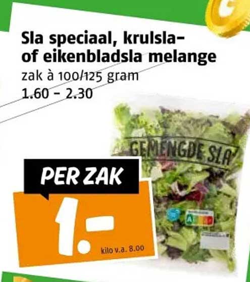 Deze week heeft Poiesz een geweldige aanbieding voor sla! Of je nu een gezonde maaltijd wilt bereiden of gewoon wat frisse ingrediënten aan je gerecht wilt toevoegen, deze sla speciaal, krulsla- of eikenbladslamelange is de perfecte keuze. Met een aanbieding die geldig is van 21 september tot en met 27 september 2025, kan je nu genieten van deze verscheidenheid aan sla voor een ongeëvenaarde prijs.