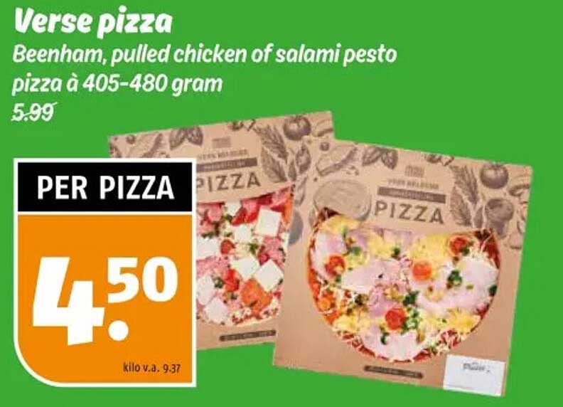Maak je klaar voor een smaakexplosie met de verse pizza die momenteel te vinden is in de aanbieding. Met een keuze uit beenham, pulled chicken of salami pesto, biedt deze pizza niet alleen gemak, maar ook een heerlijke maaltijd voor jou en je gezin. Perfect voor een doordeweekse avond of een gezellige zondagmiddag!