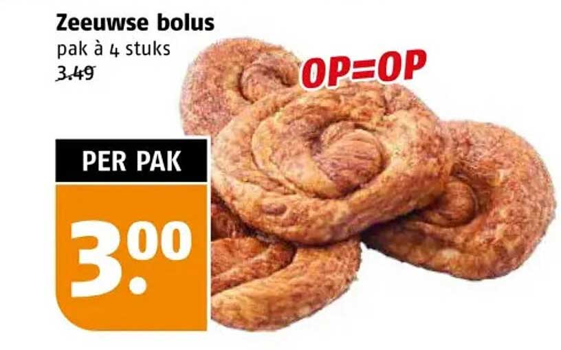 Bekijk nu de Zeeuwse bolus pak à 4 stuks aanbieding in de Poiesz folder. Deze aanbieding is geldig van 12-10-2025 tot en met 18-10-2025.