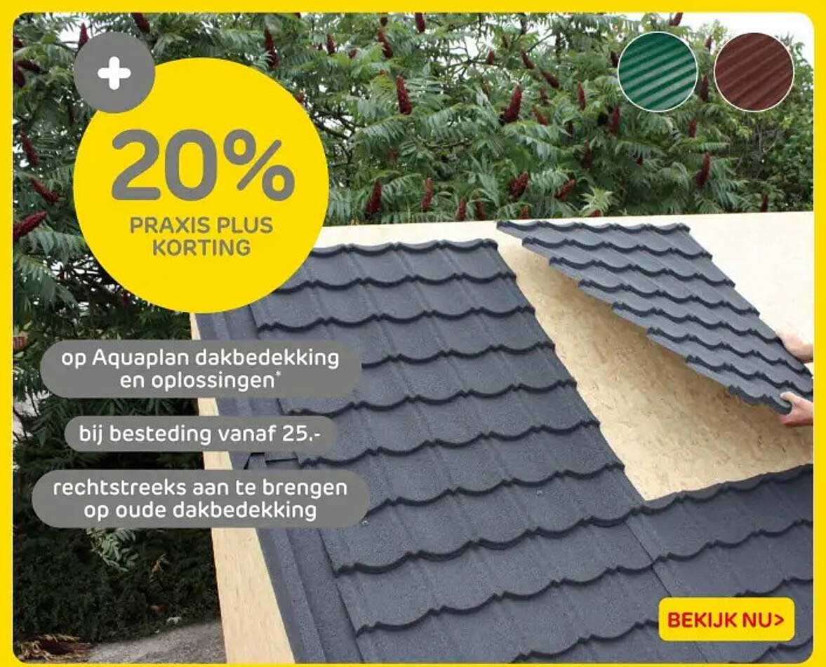 Bekijk nu de 20% PRAKIS PLUS KORTING op Aquaplan dakbedekking en oplossingen aanbieding in de Praxis folder. Deze aanbieding is geldig van 05-09-2025 tot en met 07-09-2025.