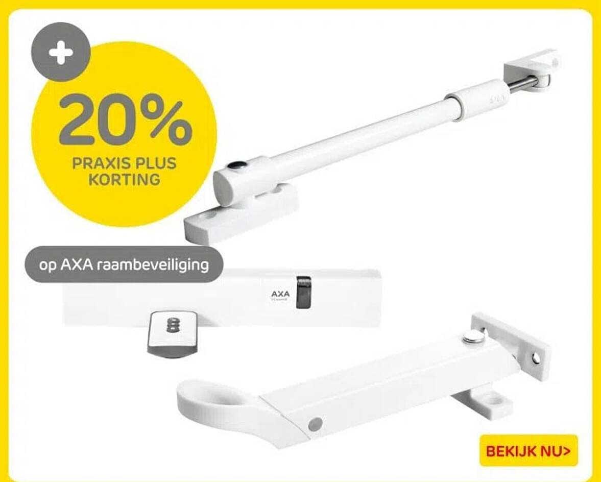 Bekijk nu de 20% PRAKIS PLUS KORTING op AXA raambeveiliging aanbieding in de Praxis folder. Deze aanbieding is geldig van 06-10-2025 tot en met 12-10-2025.