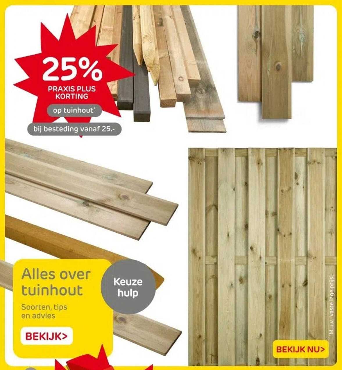 Bekijk nu de 25% PRAKIS PLUS KORTING op tuinhout bij bestelling vanaf 25.- aanbieding in de Praxis folder. Deze aanbieding is geldig van 16-05-2025 tot en met 18-05-2025.