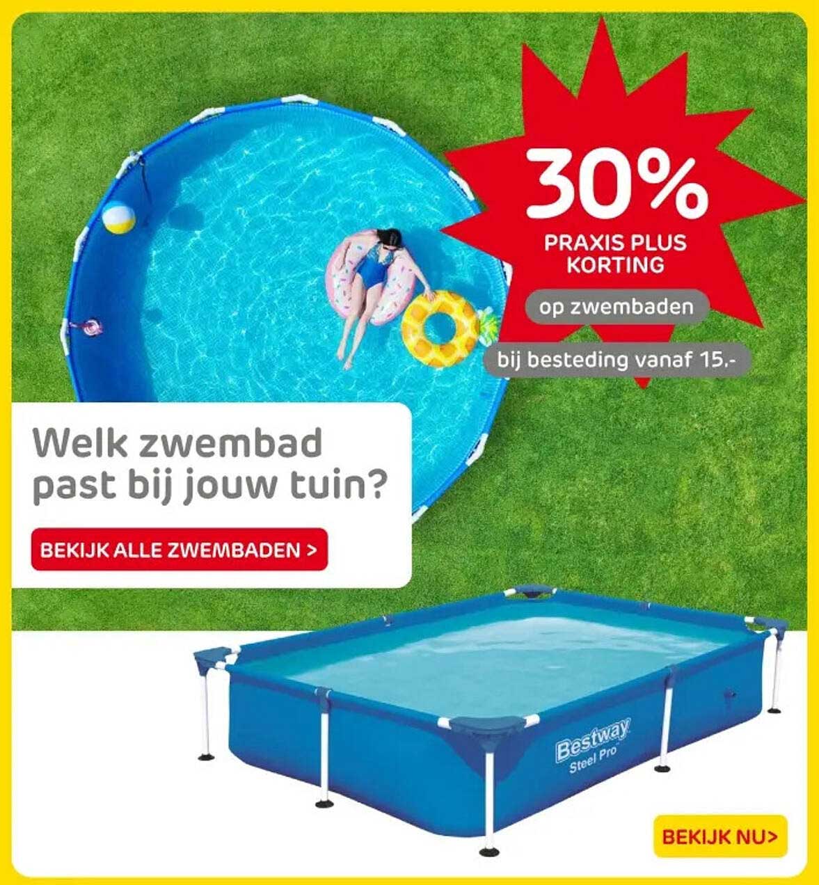 Bekijk nu de 30% PRAKIS PLUS KORTING op zwembaden bij besteding vanaf 15,- aanbieding in de Praxis folder. Deze aanbieding is geldig van 10-06-2025 tot en met 15-06-2025.