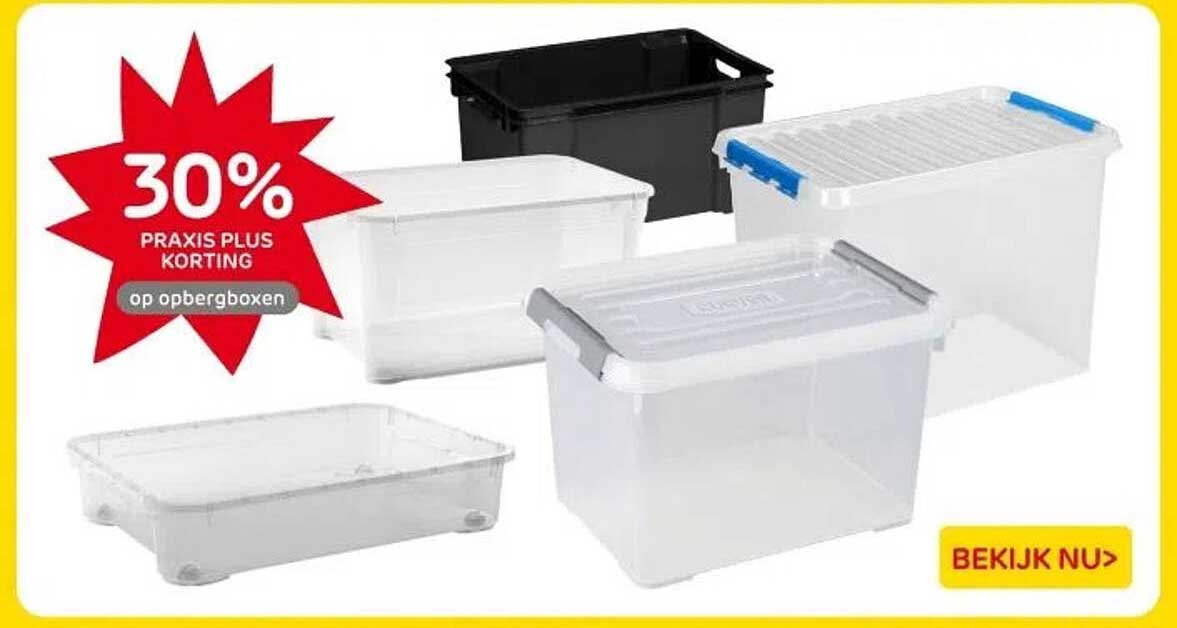 Bekijk nu de 30% PRAKTIJS PLUS KORTING op opbergboxen aanbieding in de Praxis folder. Deze aanbieding is geldig van 13-10-2025 tot en met 19-10-2025.