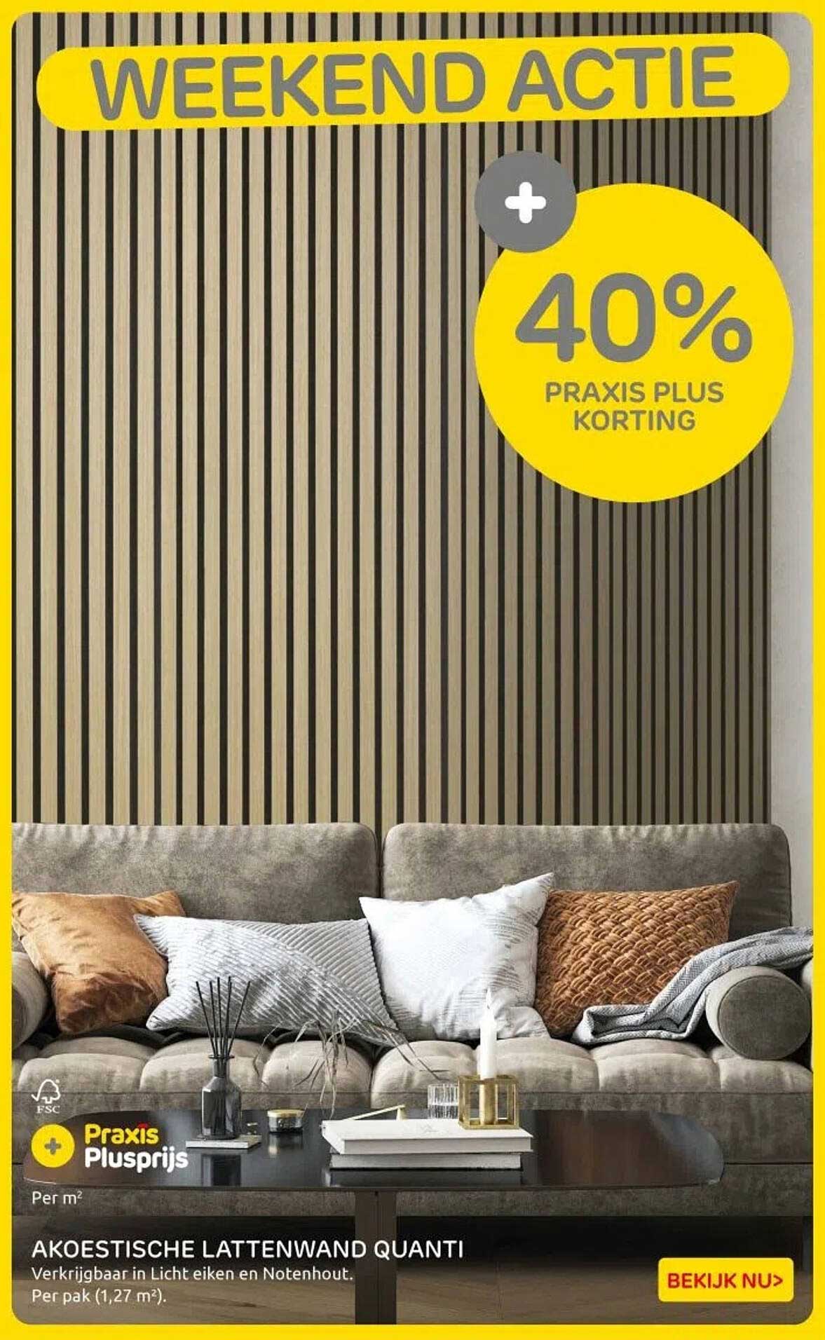 Bekijk nu de AKOESTISCHE LATTENWAND QUANTI aanbieding in de Praxis folder. Deze aanbieding is geldig van 31-10-2025 tot en met 02-11-2025.