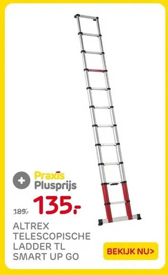 Ontdek de geweldige Altrex Telescopische Ladder Tl Smart Up Go aanbieding in de nieuwste Praxis folder. Naast deze aanbieding vind je nog veel meer aantrekkelijke kortingen. Je kunt de Altrex Telescopische Ladder Tl Smart Up Go eenvoudig online bestellen via de Praxis website of kopen in een winkel bij jou in de buurt.