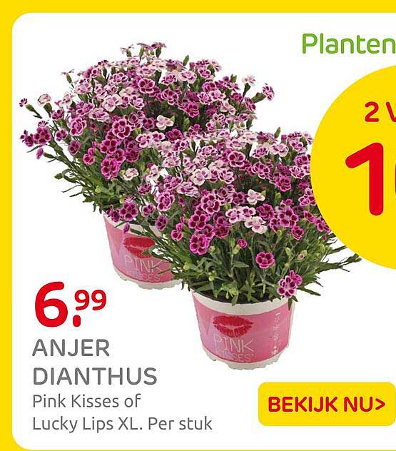 Bekijk nu de ANJER DIANTHUS Pink Kisses of Lucky Lips XL. Per stuk. aanbieding in de Praxis folder. Deze aanbieding is geldig van 20-06-2025 tot en met 22-06-2025.
